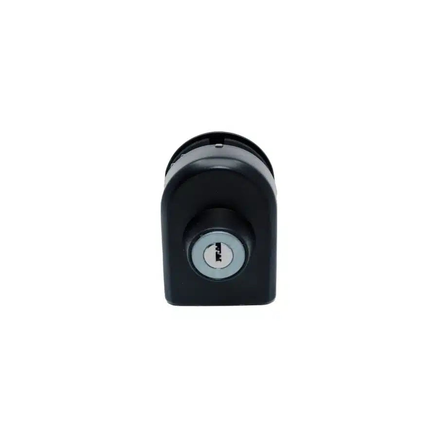 Glaze Hardware Slip-On Oval Lock for Glass to Wall is ready-to-install and does not require any additional preparation. In the locked position, the plunger recesses into a spring-loaded receptible mounted into the cabinet base. It is an ideal lock for showcases containing valuable items, complete with a latch and a set of keys.