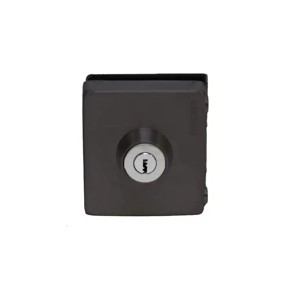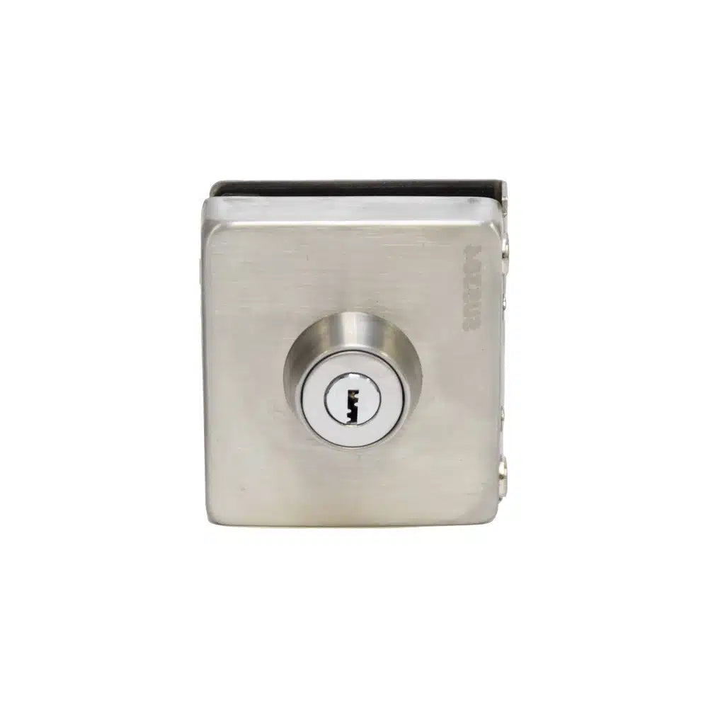 Glaze Hardware Slip-On Square Lock for Glass to Wall is ready-to-install and does not require any additional preparation. In the locked position, the plunger recesses into a spring-loaded receptible mounted into the cabinet base. It is an ideal lock for showcases containing valuable items, complete with 2 deadbolts and a set of keys.