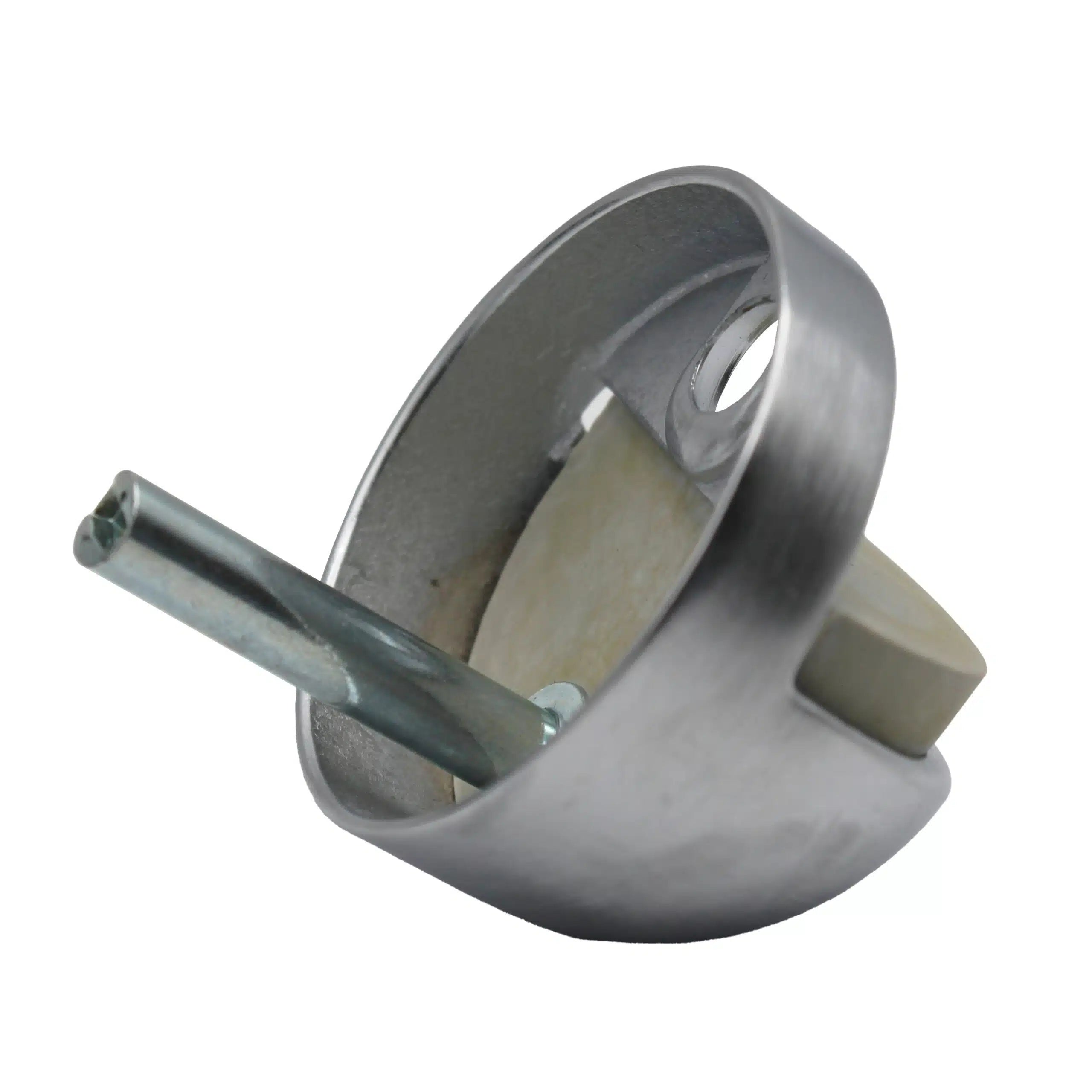 Glaze Hardware Floor Mounted Base Dome Stops have a heavy cast 1-3/4″ door stop with a vinyl insert. A post in the high-profile base seats into the hole drilled into the floor, which prevents the base from shifting.