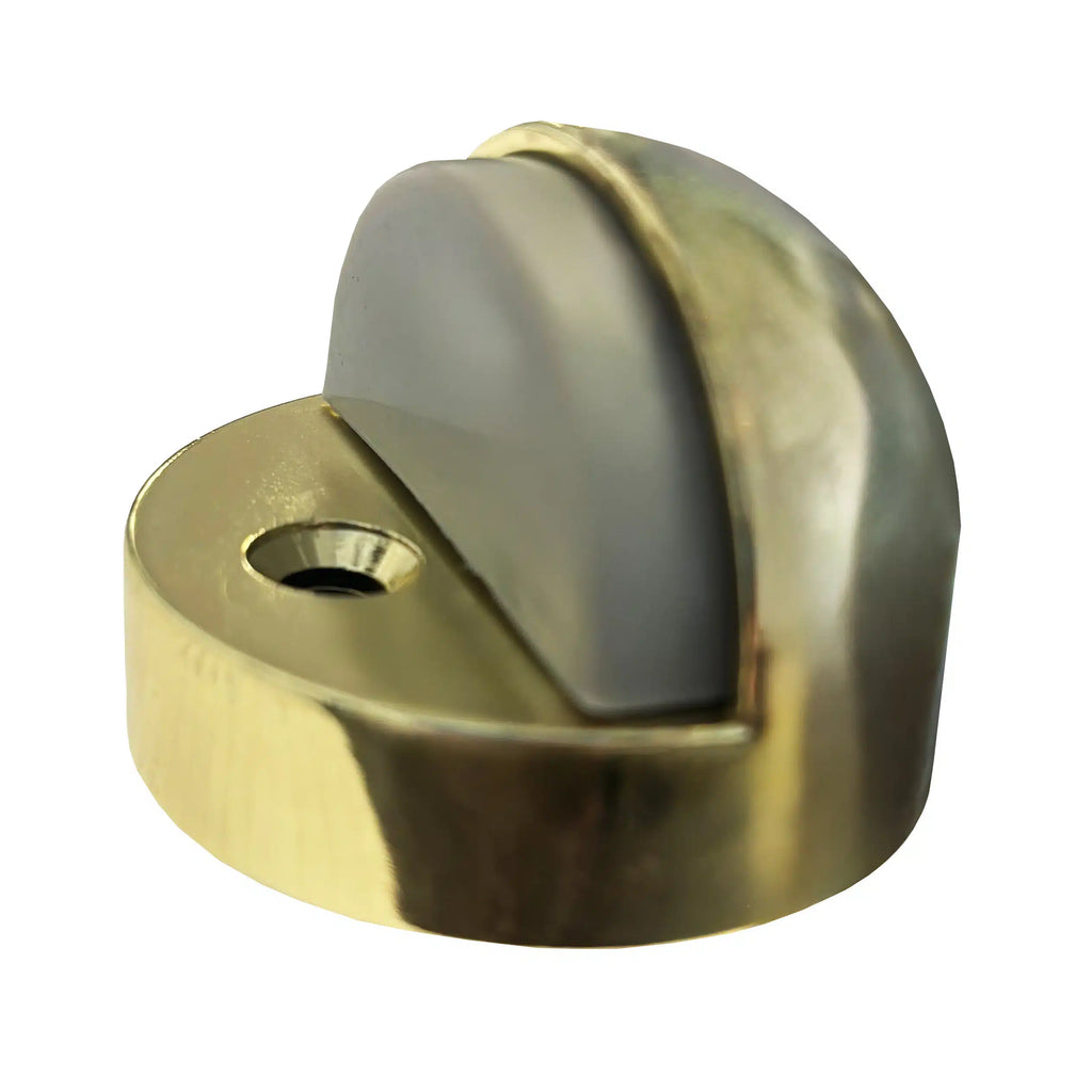 Glaze Hardware Floor Mounted Base Dome Stops have a heavy cast 1-3/4″ door stop with a vinyl insert. A post in the high-profile base seats into the hole drilled into the floor, which prevents the base from shifting.