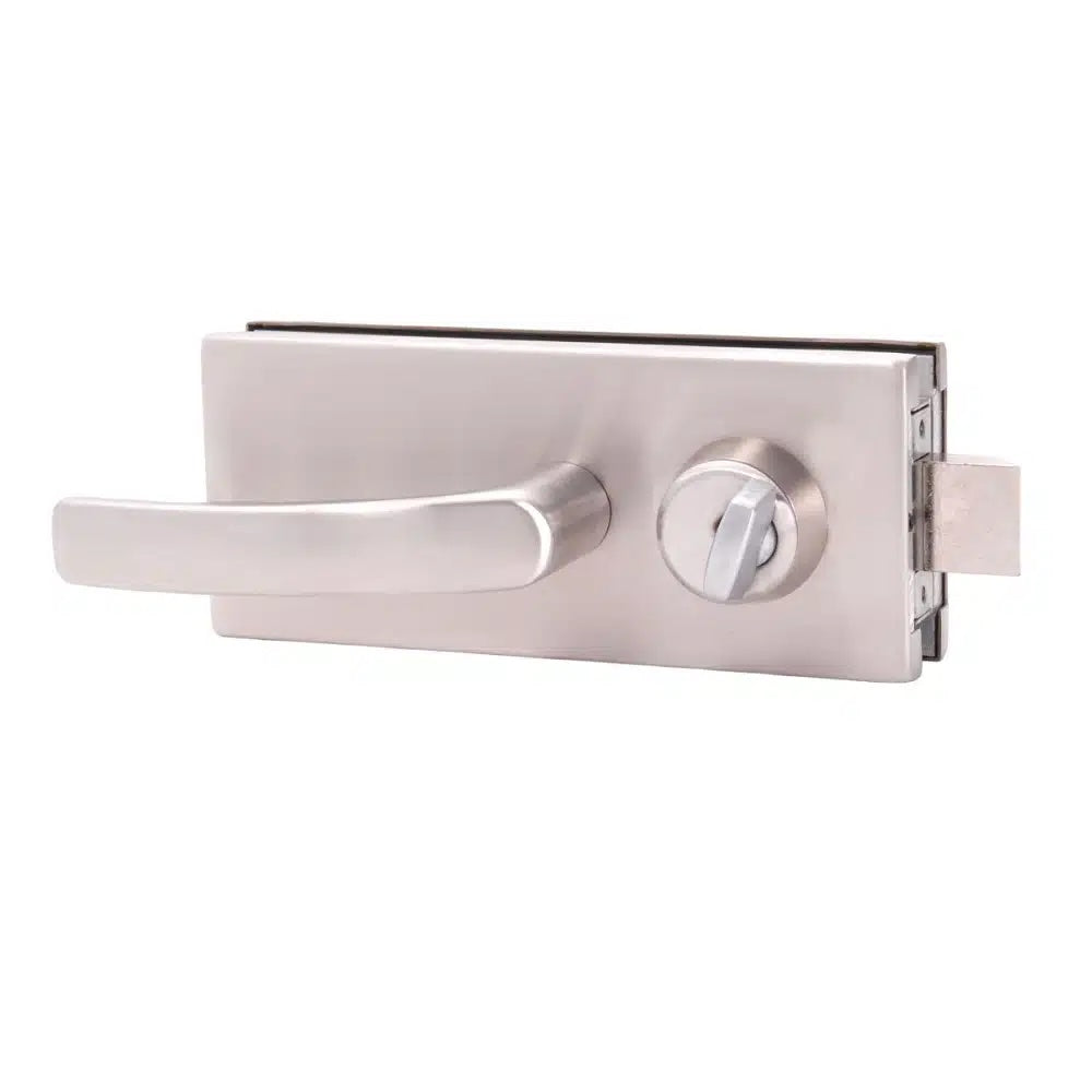 Glaze Hardware’s L900 Series Glass-Mounted Latch has been designed for use with the L901 Series Glass-Mount Keeper. It comes assembled with keyed cylinder, thumbturn, and lever handles.