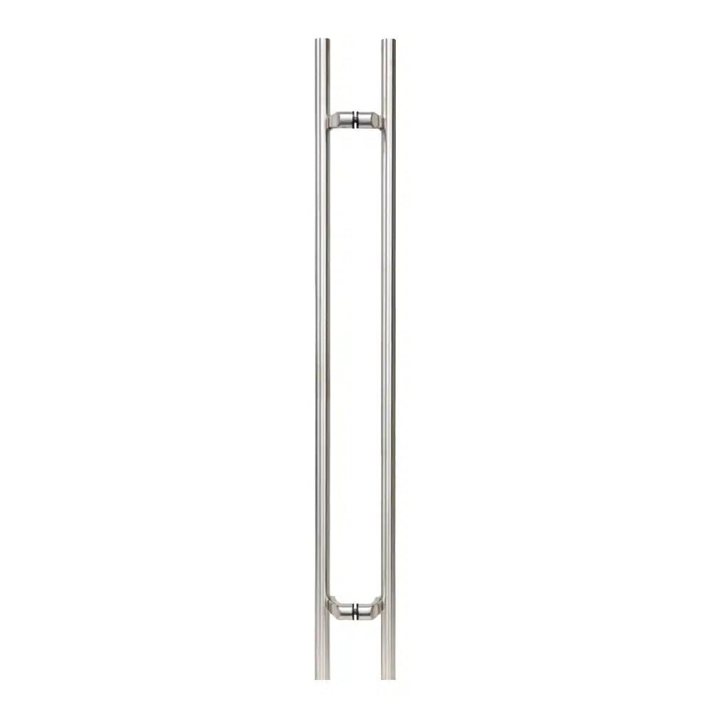 Glaze Hardware’s Ladder Style Back-to-Back Pull is made of 314 stainless steel for maximum strength and durability. It comes with two mid-posts and fasteners for back-to-back mounting on 3/8” to 3/4″ glass panels. Fasteners for 1-3/4″ wooden or aluminum are also included in the packaging. Maximum spacing of mid-posts is limited to 72”.