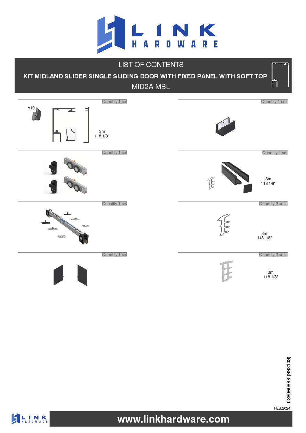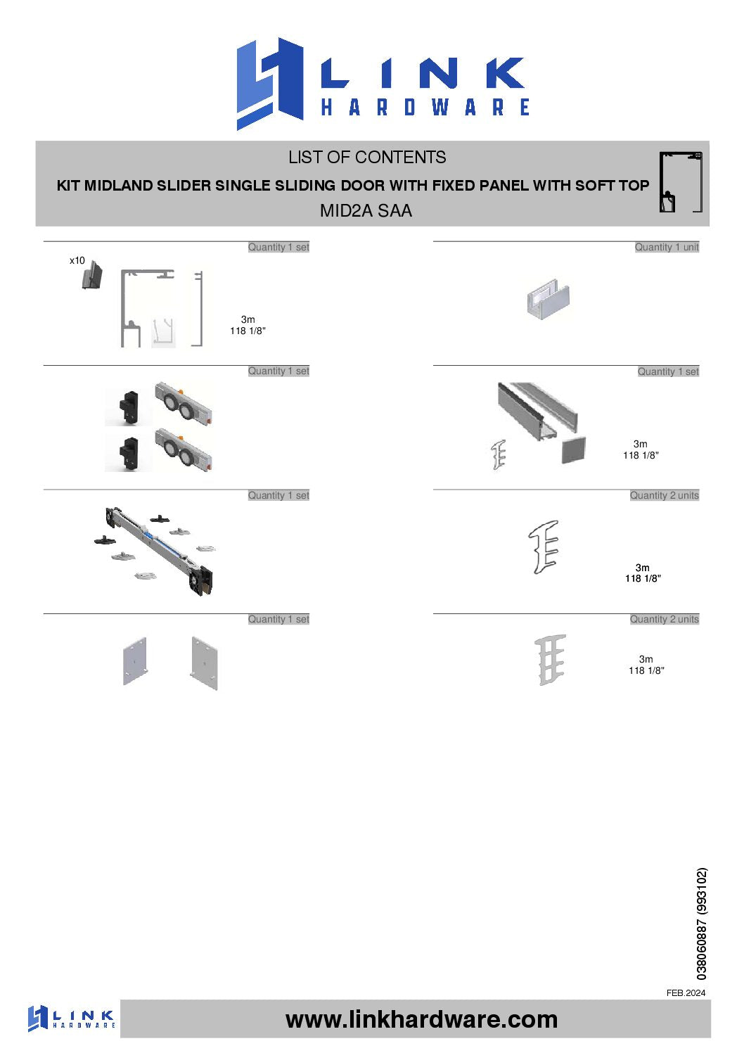 Midland Slider Kit Single Sliding Door with Fixed Panel and Soft Close