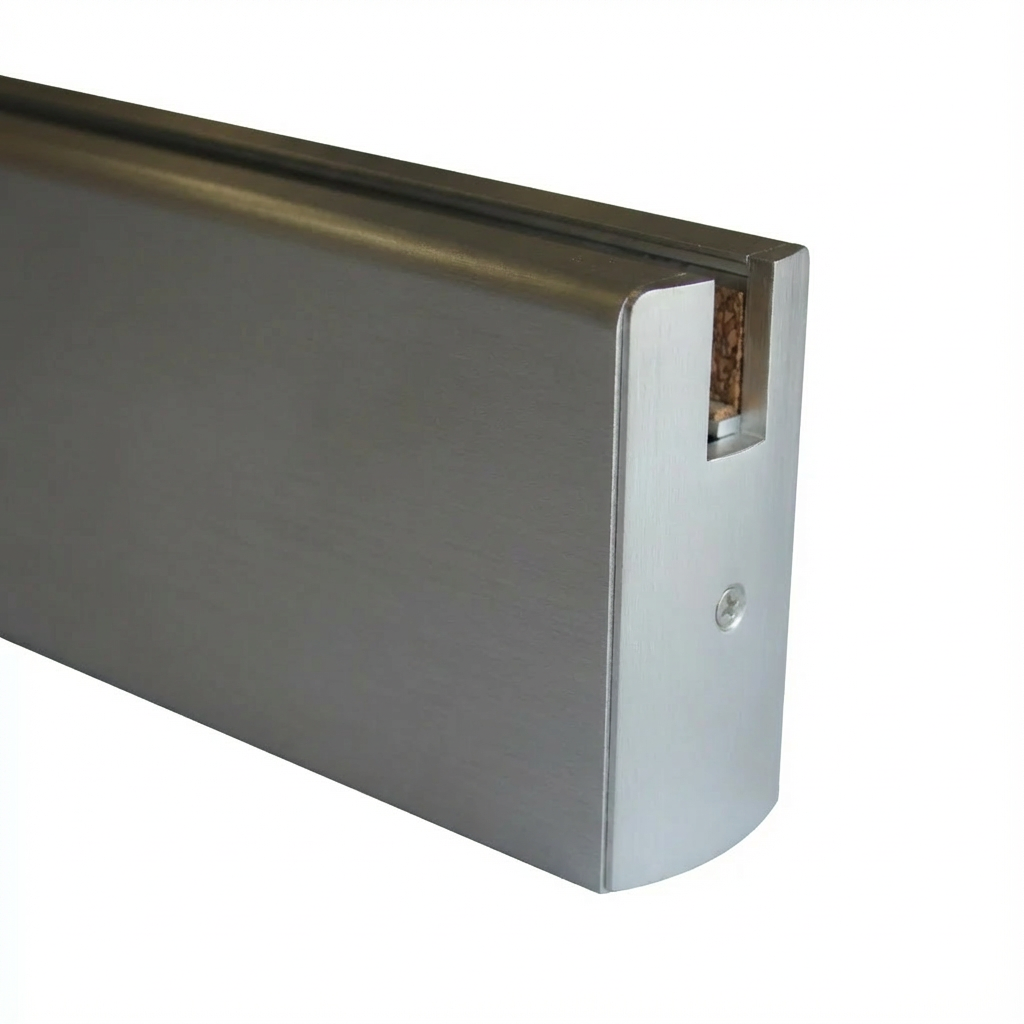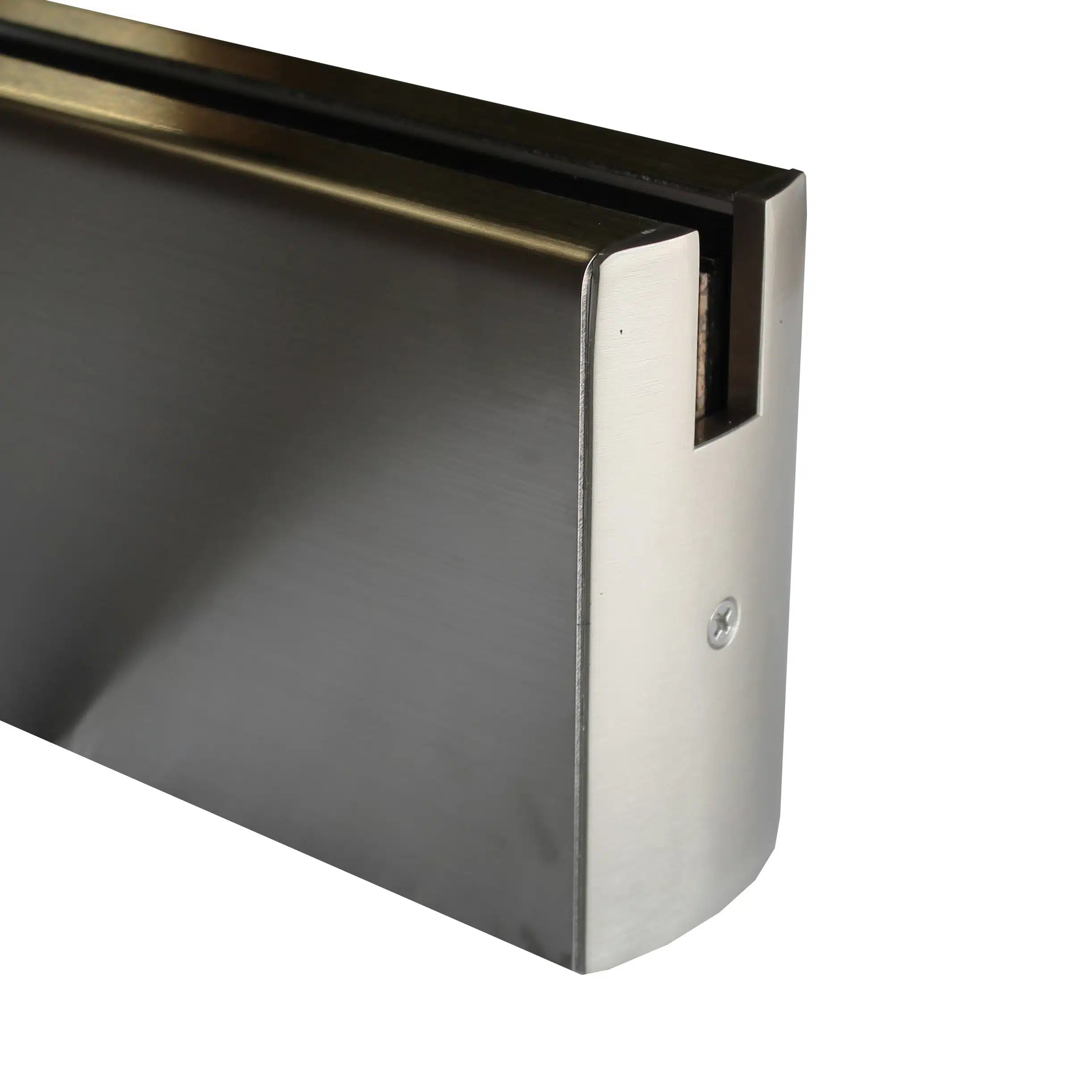 Glaze Hardware Door Rails are secured with pressure fit set screws at the bottom of the door rail. No glass cut outs or silicone are required making the installation quick and mess free. Door rails are 4″ tall, 6″ & 10″ tall are available with special request. All door rails come with endcaps.